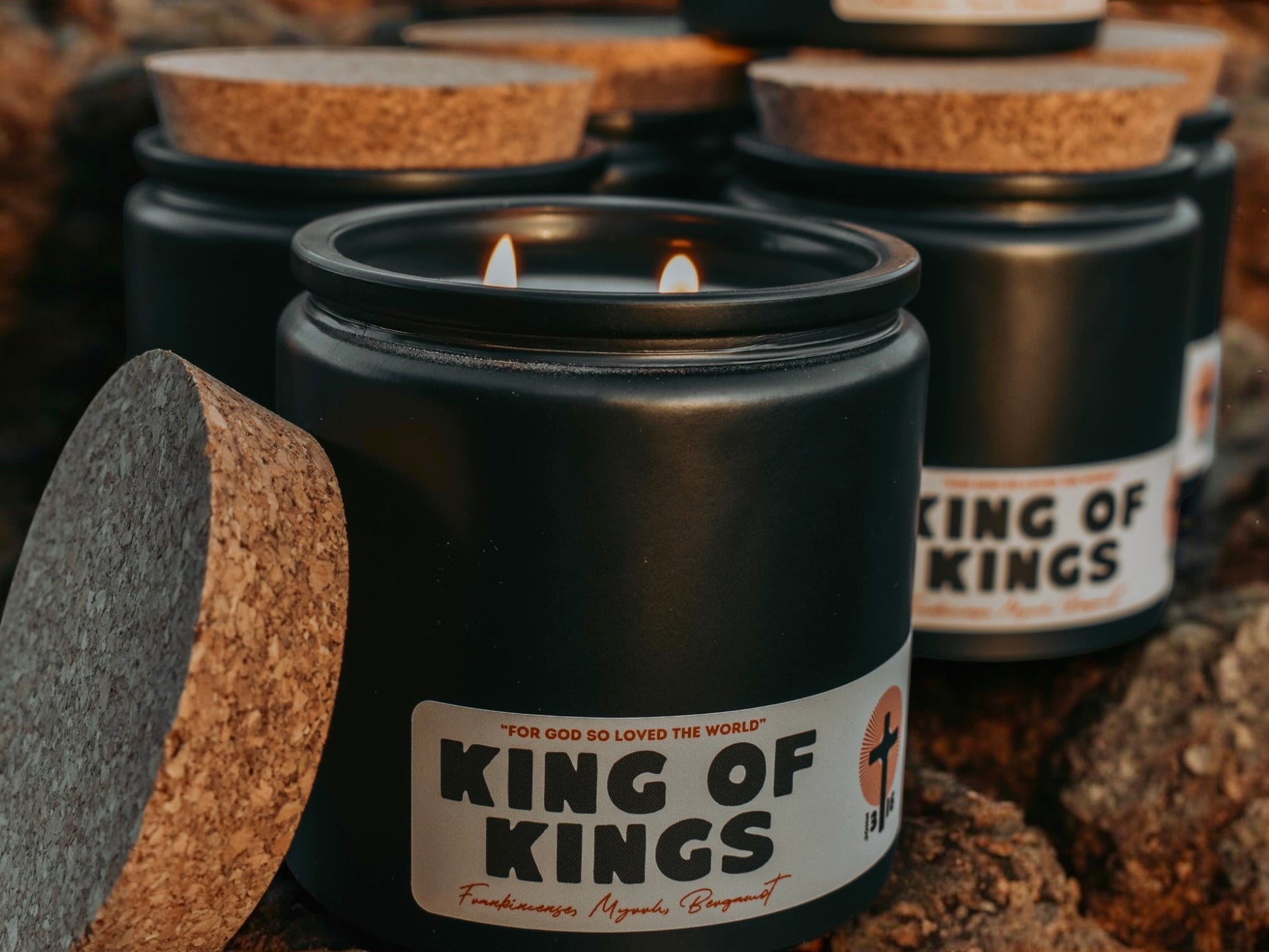 Derived from tree sap, frankincense and myrrh are fragrant resins highly valued for incense and perfumes. Our King of Kings candle captures the essence of these enduring scents used for millennia and as a powerful reminder of our Savior.